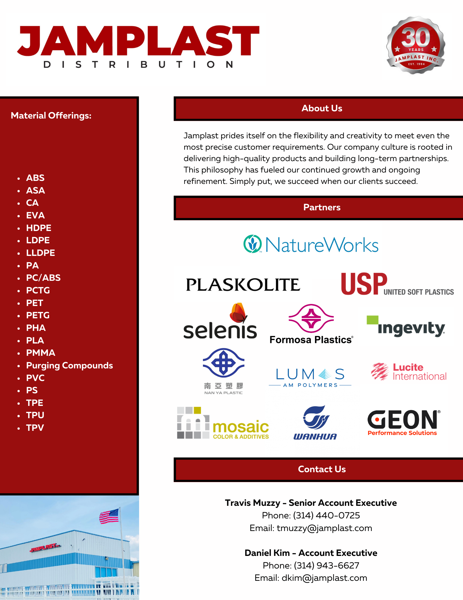 Polymer supply since 1994. Leading brands offered from strategic distribution warehouses for plastic processors.